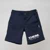 THEM Mac Shorts - Navy. 7.5 oz Twill. 65% Polyester / 35% Cotton. Heavy Duty Brass Zipper and Button Closure.